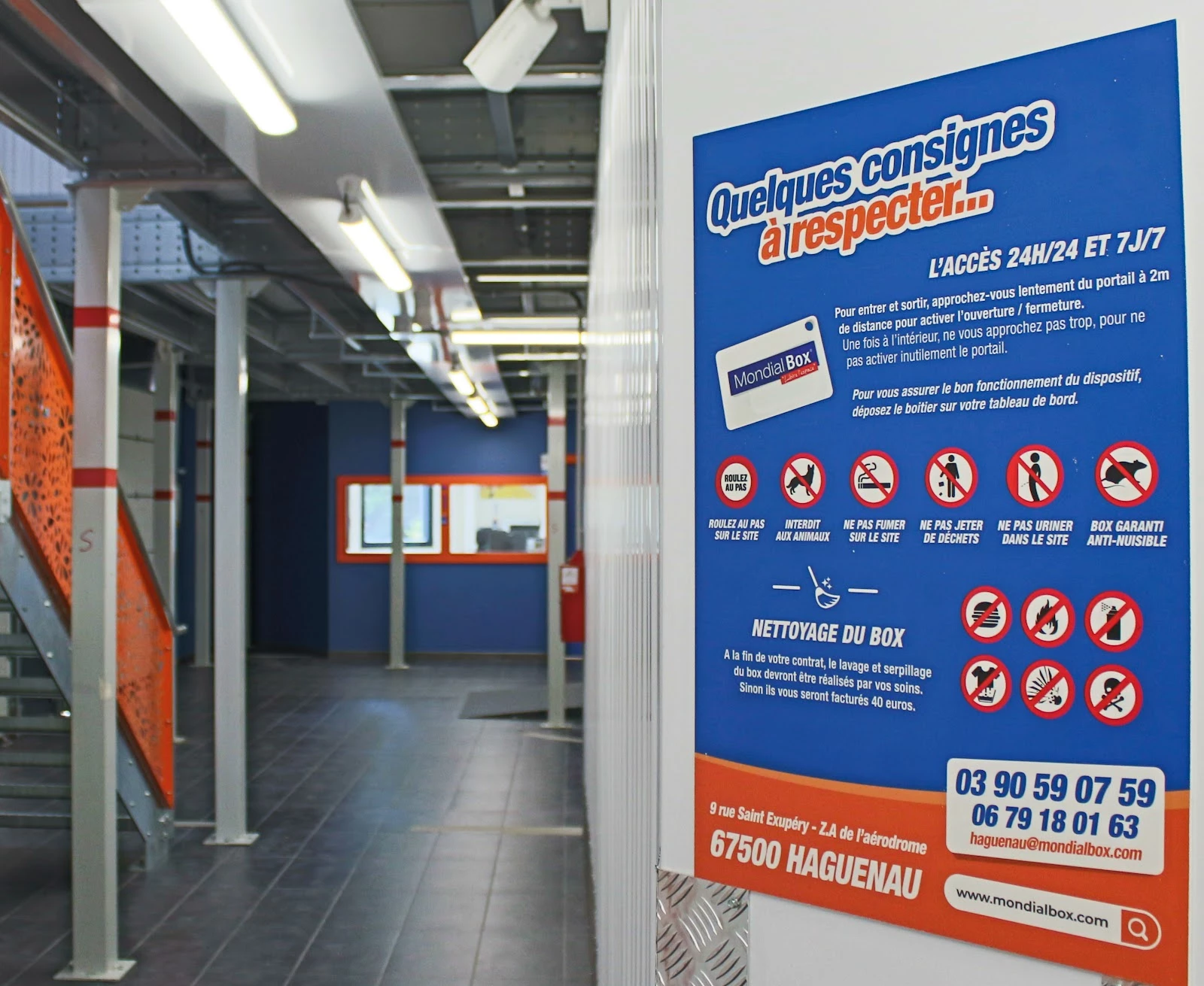 The entire Haguenau centre is fully fenced. Access is arranged so that you can access your unit self-service, by entering an access code or presenting a badge at the gate for it to open automatically. When you sign your rental contract, we give you a padlock with a key that only you can unlock to open the doors of your unit. In addition, all storage sites are secure Chez Mondialbox and benefit from 24/7 video camera surveillance.